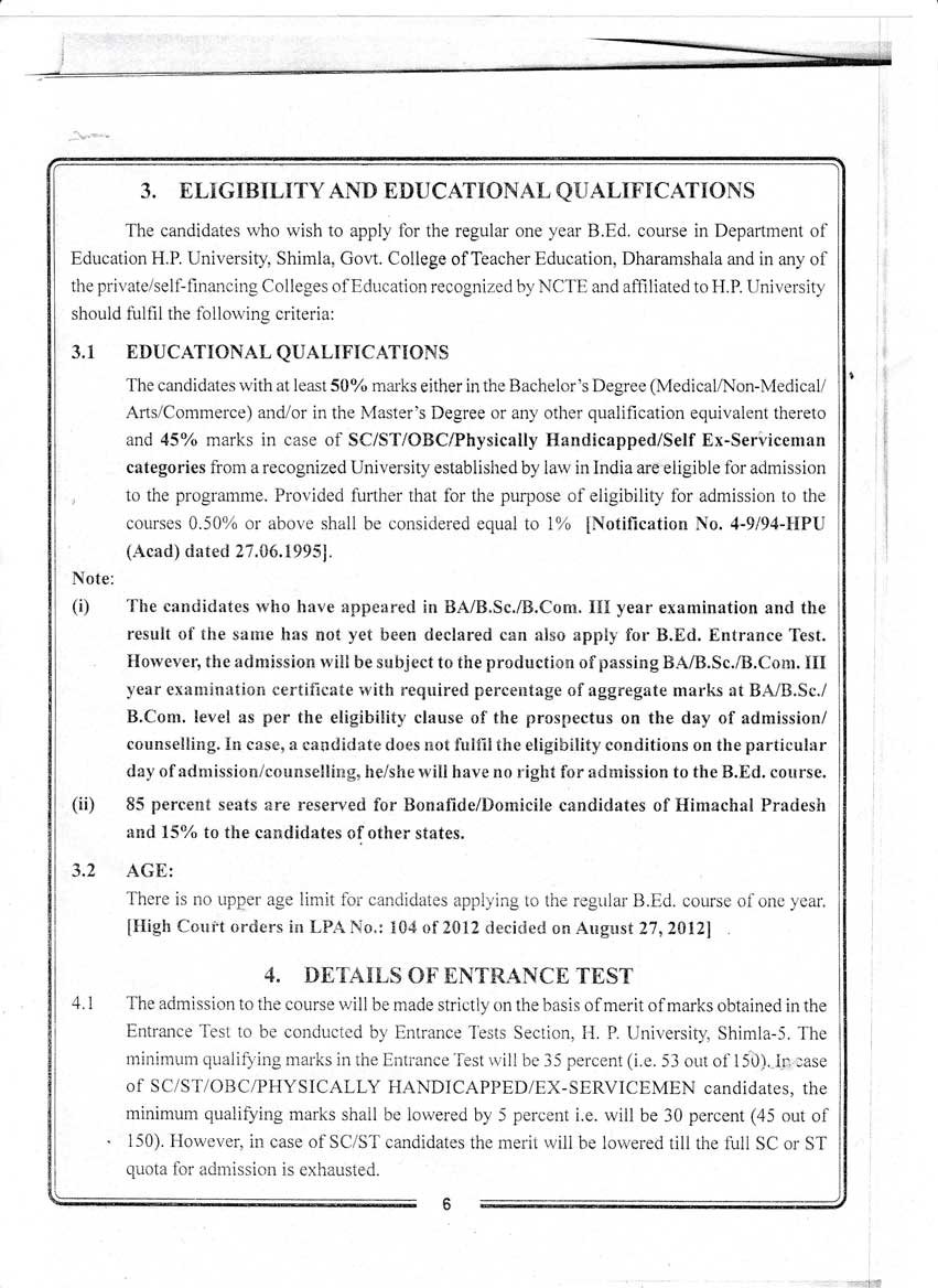 Those who have passed their lower examination from university other than Himachal Pardesh University, are required to obtain eligibility certificate from the HPU within the specified time period of 15 days without late fee.After this late fee payment as required by HPU will be charged