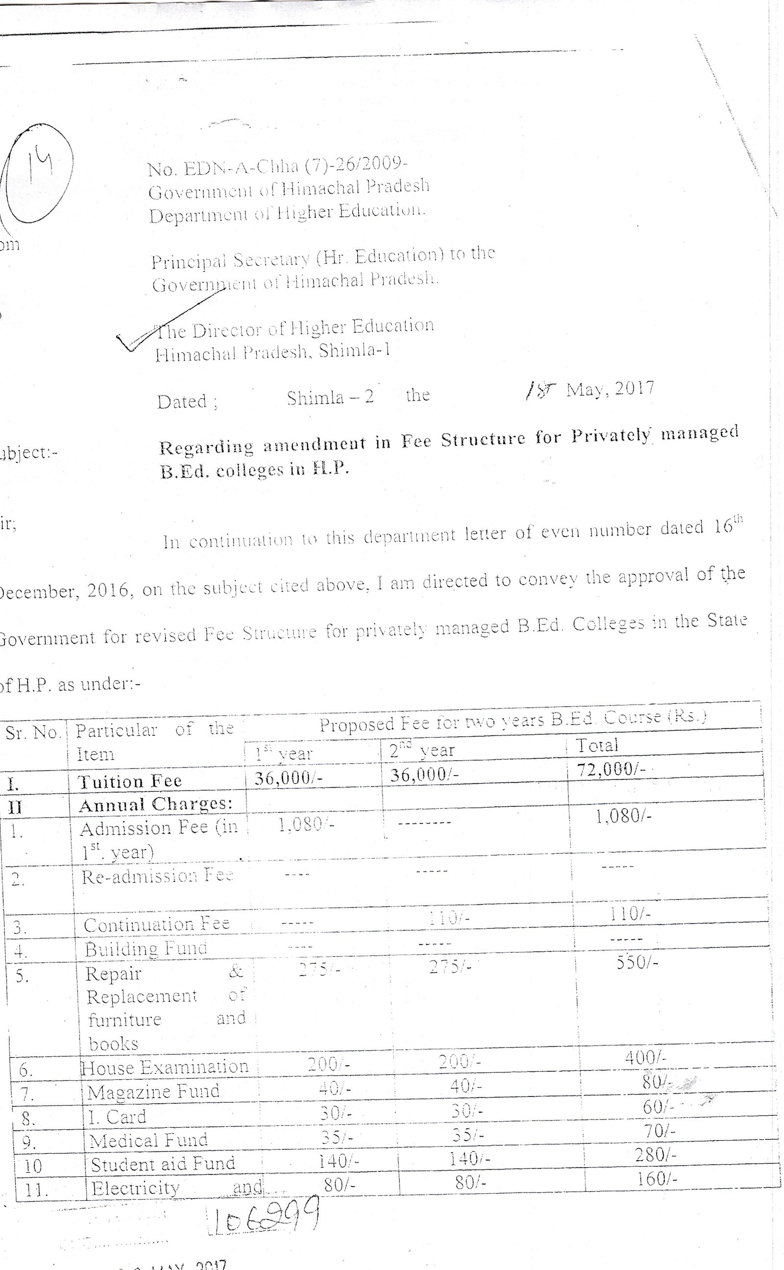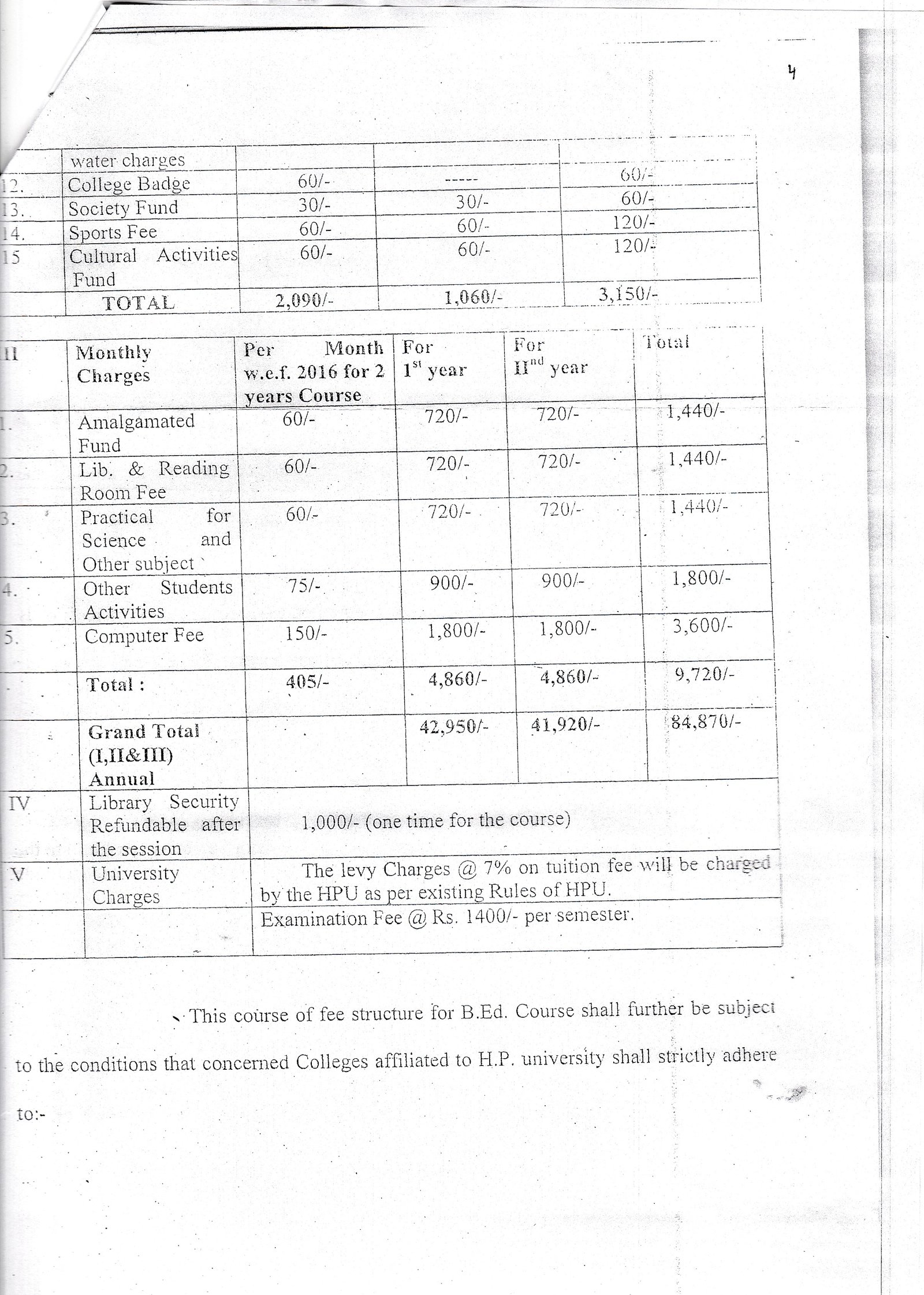 Janak Raj Mahajan B.Ed College--Fee Detail